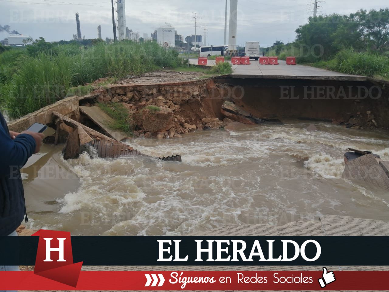 Se forma socavón en la carretera de ruta de escape Nanchital - Braskem Idesa