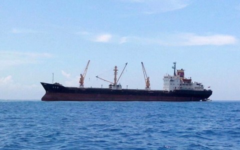 Verifican daños por encallamiento de buque coreano