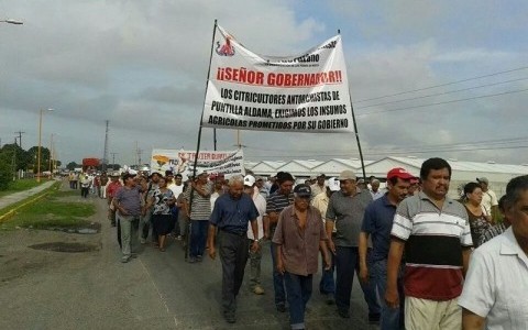 Tlapacoyan.- Bloquean el libramiento de Tlapacoyan