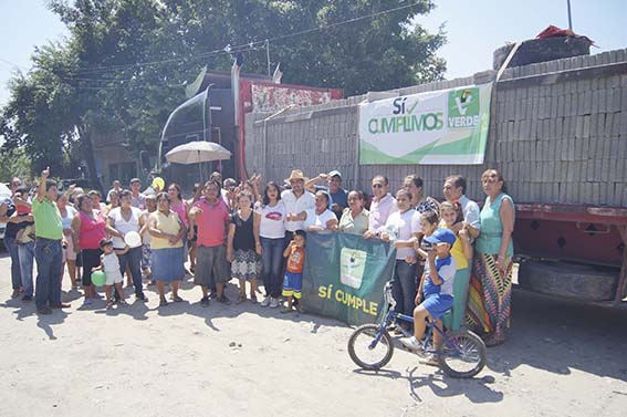 Con la entrega de ocho mil blocks subsidiados al 50 por ciento, familias de la colonia Primero de Mayo podrán emprender la construcción de sus viviendas, cocinas o baños, dependiendo de sus necesidades, apoyo que agradecen al presidente del Comité Directivo Municipal del Partido Verde Ecologista de México, Francisco Sánchez Macías y al diputado local por el VIII Distrito, Eduardo Sánchez Macías, quienes con recursos propios han absorbido el monto restante del costo total.