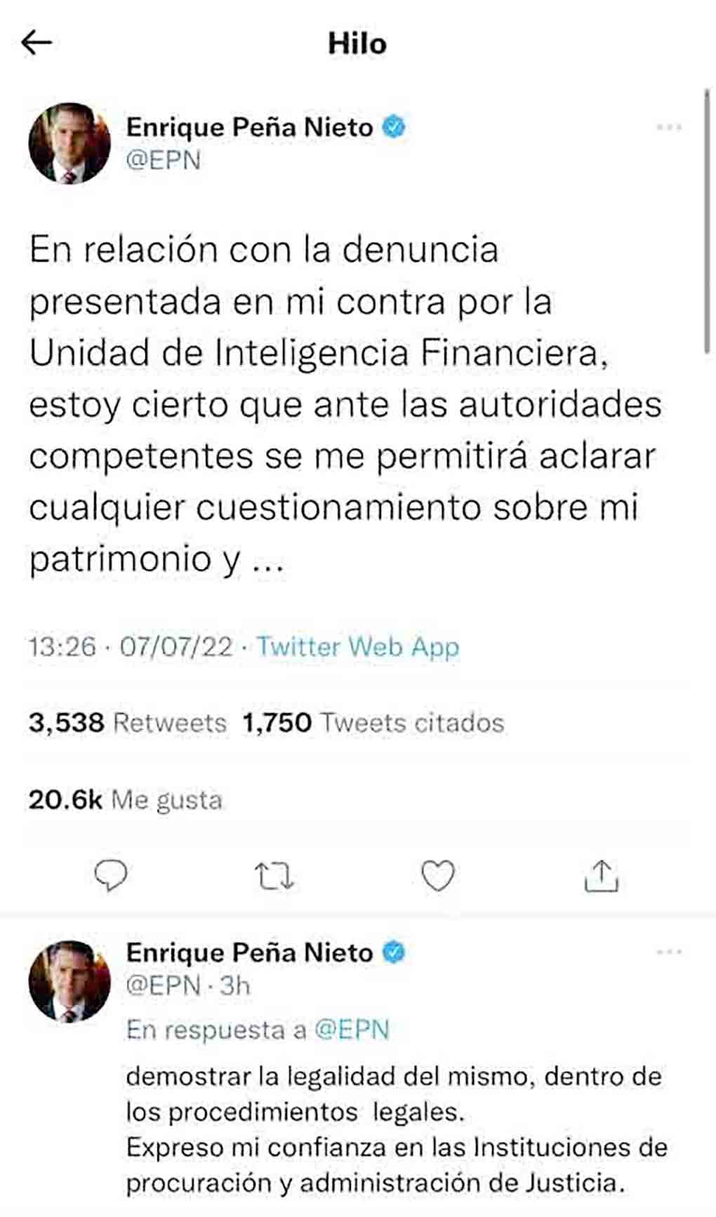EPN responde a denuncia de la UIF