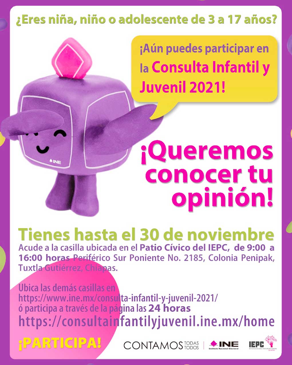 Exhorta INE a participar en Consulta Infantil y Juvenil