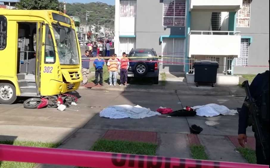 El choque entre un autobús de la línea Garitas y una motocicleta, en las inmediaciones de la Unidad Habitacional Valle Alegre del municipio de Ixtaczoquitlán, dejó como saldo dos personas muertas; un hombre y una jovencita menor de edad, así como daños materiales.