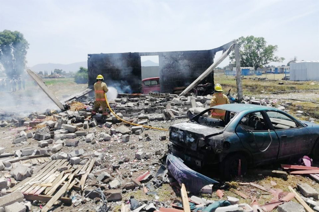 Tres hombres resultaron lesionados tras la explosión de un almacén de pirotecnia, en el Municipio de Tultepec.